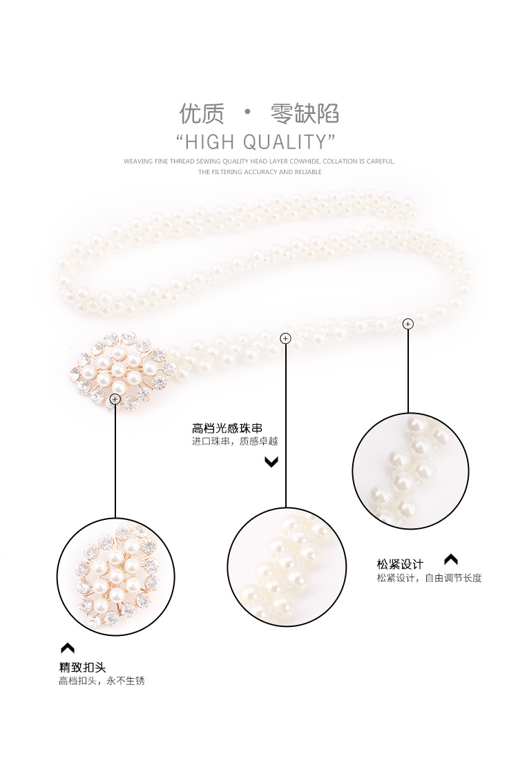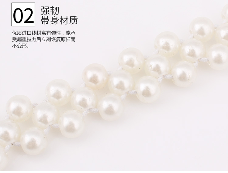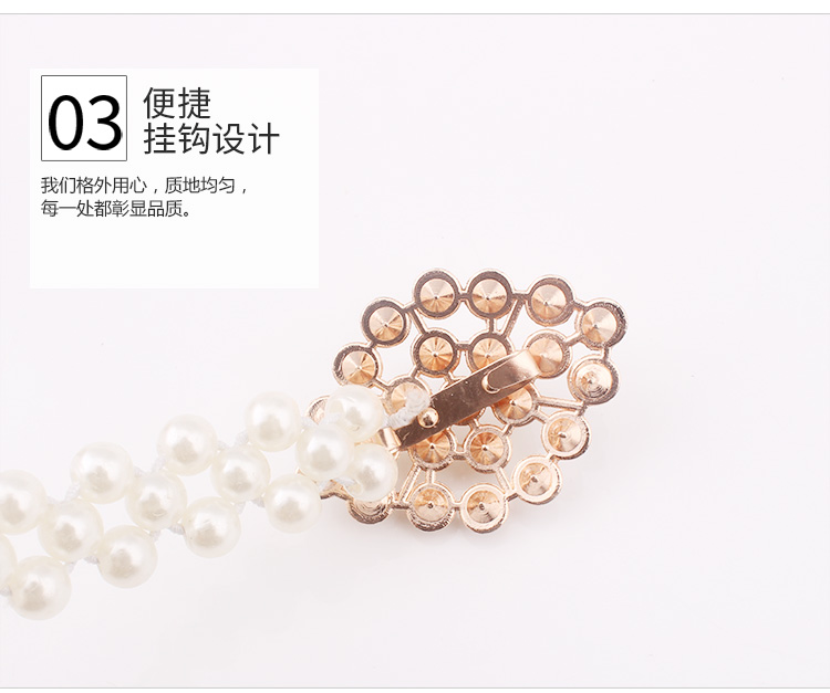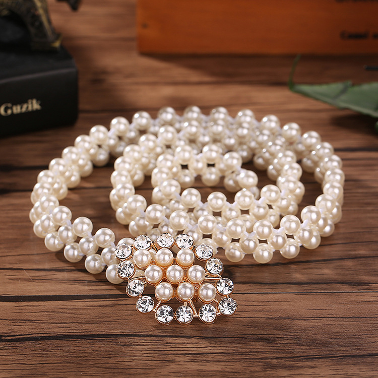 เข็มขัดมุกสีขาว หัวติดเพชรและติดมุกตรงกลาง สวยมากค่ะงานแฟชั่นเกาหลี แมทได้กะหลายๆชุด ช่วยเพิ่มความหรูหรากับชุดออกงานได้หลายแบบ ตัวเข็มขัดเป็นยางยืดร้อยมุก 2 เส้น