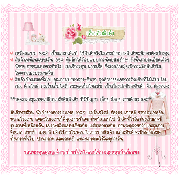 ดังนั้น ก่อนการสั่งซื้อทุกครั้ง โปรดเช็ครายละเอียดสินค้า ไซส์ และ ภาพถ่ายอย่างรอบคอบนะคะ